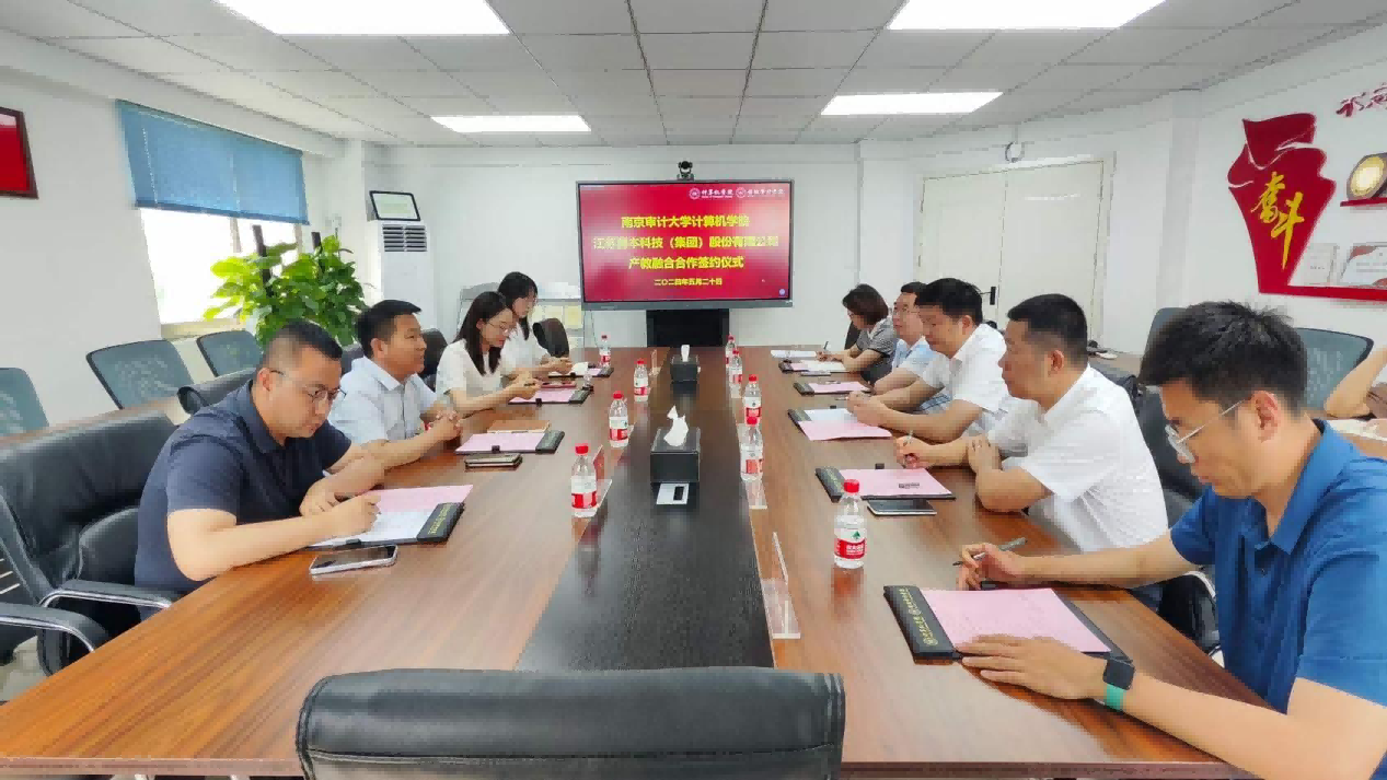 2024年5月20日,江苏evo视讯官网科技集团与南京审计大学计算机学院在南京审计大学致明楼308会议室成功举办了产教融合签约仪式,南京审计大学计算机学院院长徐超、副院长郭红建、系主任崔应留、院长助理吕从东、党政办主任苟丽华、江苏evo视讯官网科技集团董事长张福德、总经理唐佩等出席签约仪式。